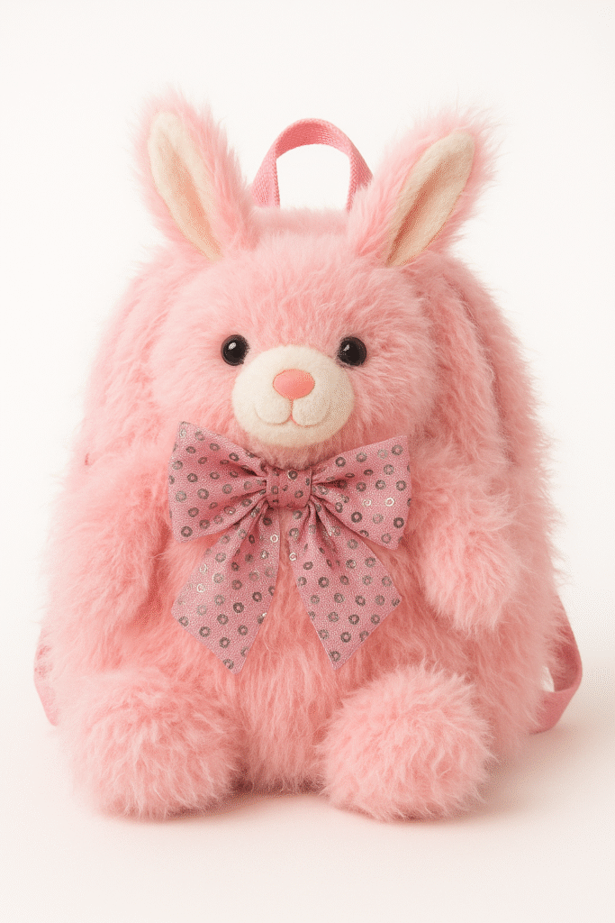 Adorable Furry Bunny School Bag for Kids | Soft Plush Pink Backpack