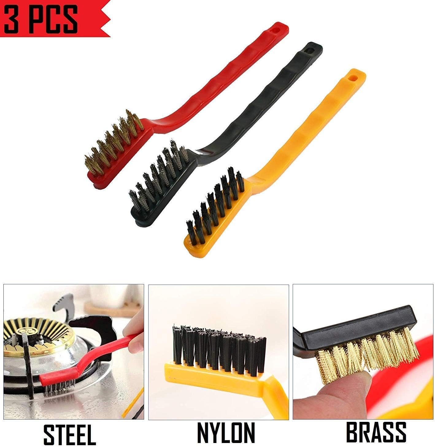 Keep every surface spotless with this 3 Pcs Cleaning Brush Set featuring durable metal, brass, and nylon bristles.