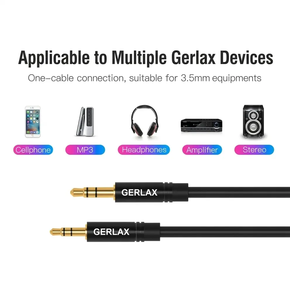 The Gerlax AUX cable boasts universal compatibility, working effortlessly with cars, laptops, mobile devices, headphones, and speakers equipped with a 3.5mm jack. Its compact and lightweight design makes it a must-have audio accessory for everyday convenience or travel, offering you a versatile and user-friendly audio solution.