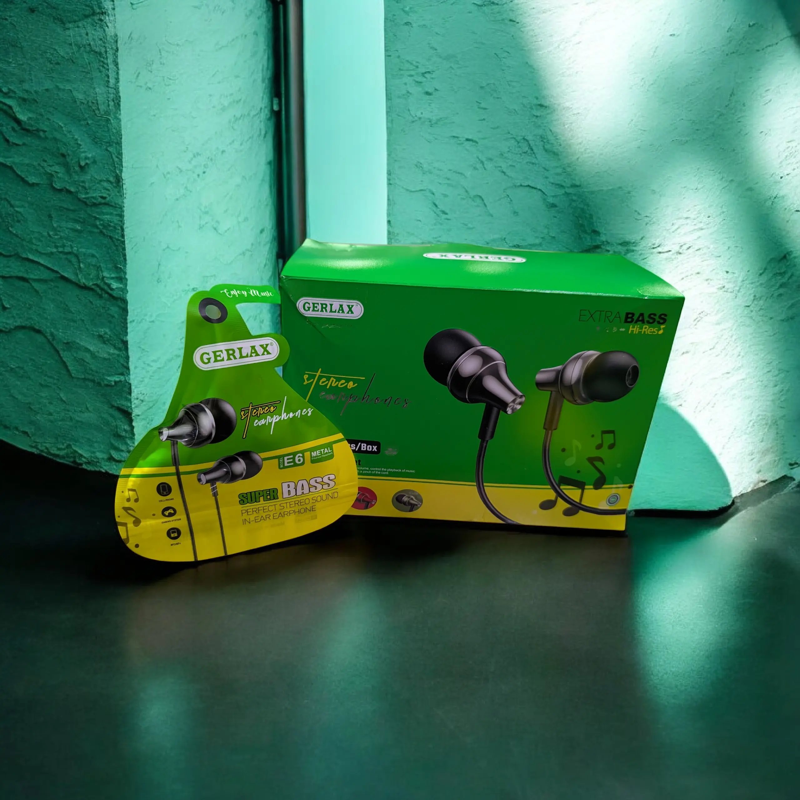 Enhance your audio experience today with the Gerlax E6 Super Bass In-Ear Stereo Headphones—your ultimate companion for quality sound and practical functionality.