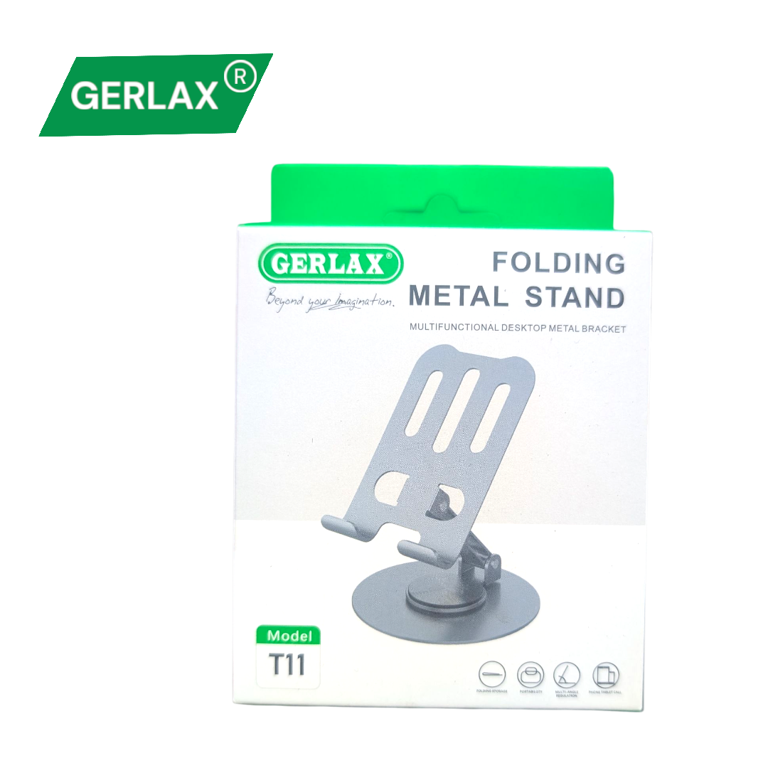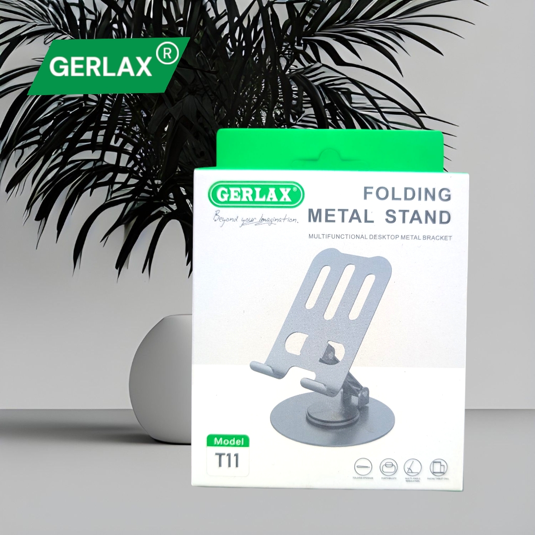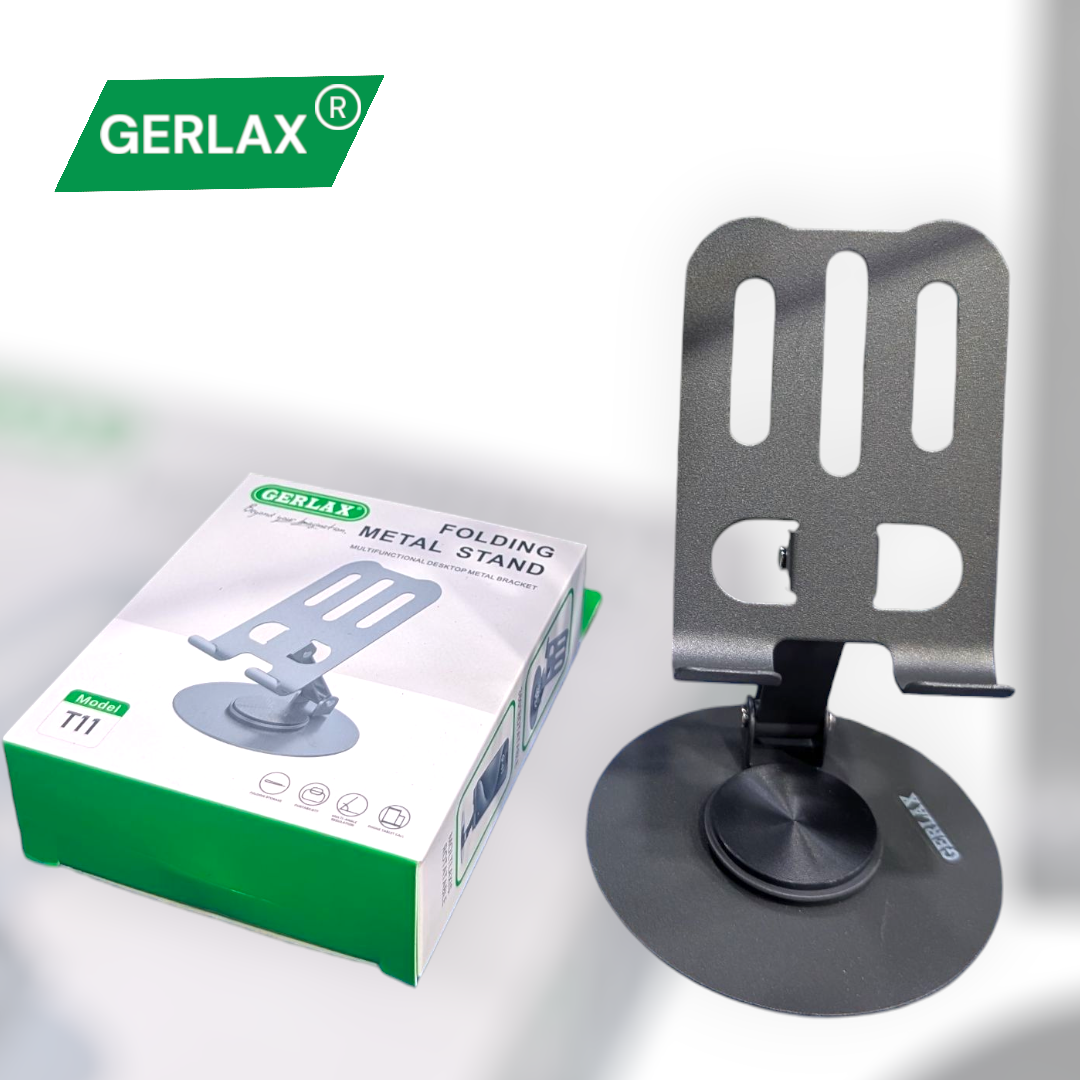 The Gerlax T11 360° Folding Phone Holder Stand is designed for ultimate convenience and stability. Made from high-quality materials, it features a sturdy metal base, anti-slip pads, and fully adjustable angles for your comfort. Whether you’re working, studying, cooking, or relaxing, this stand keeps your phone secure and at the perfect angle.