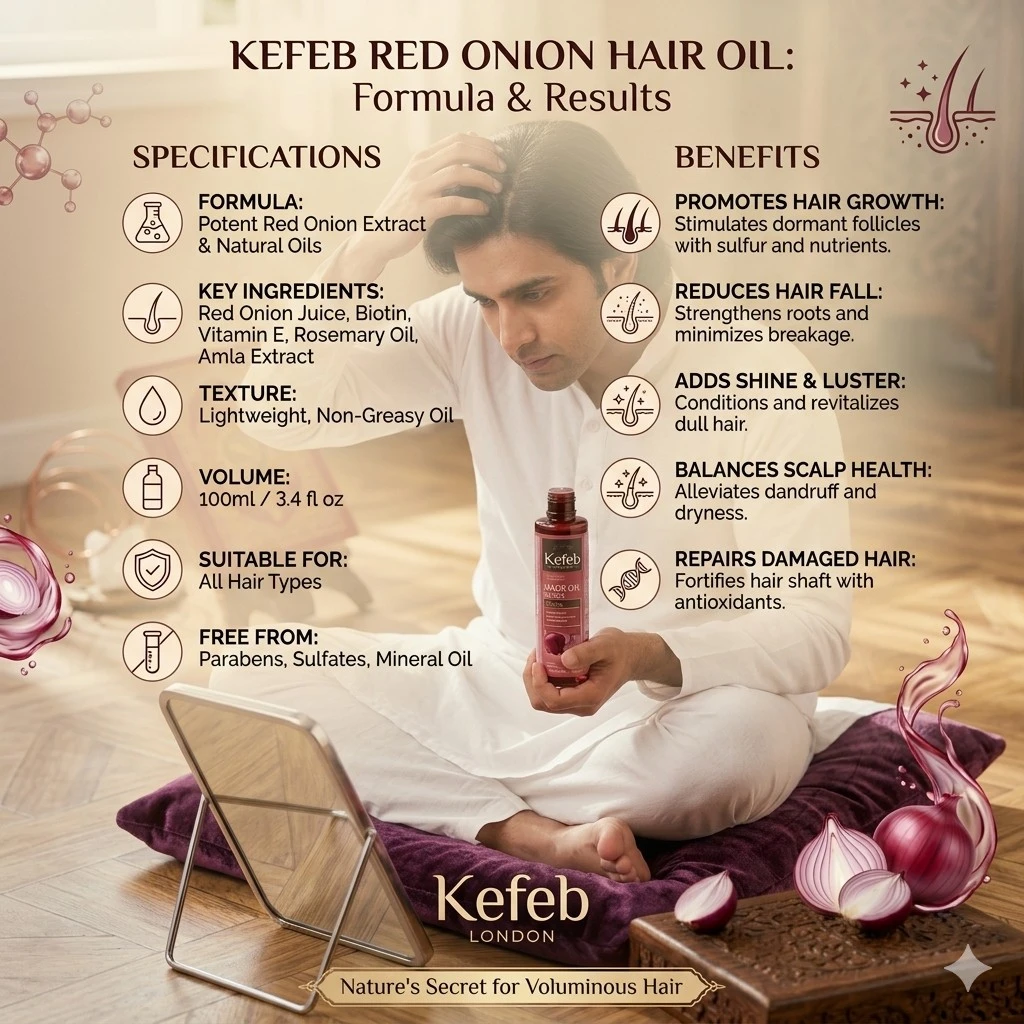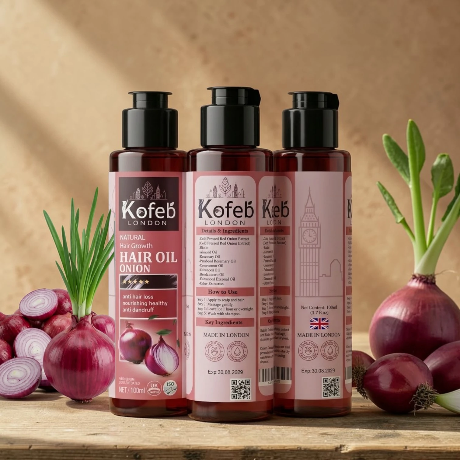 Unlock the secret to luscious locks with Kofeb London Natural Red Onion Hair Growth Oil. Specially formulated to combat hair loss and control dandruff, this natural remedy delivers the nourishment your scalp needs to grow strong, resilient hair. With the powerful benefits of red onion extract, this product promotes hair growth while improving overall hair health.