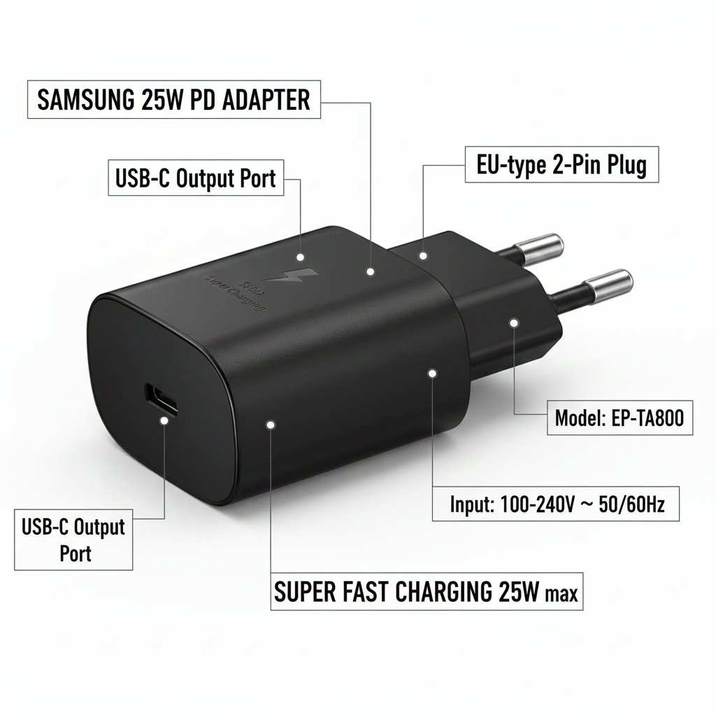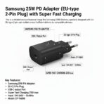 Samsung 25W PD Adapter: Provides optimal charging for Samsung devices and other compatible gadgets.