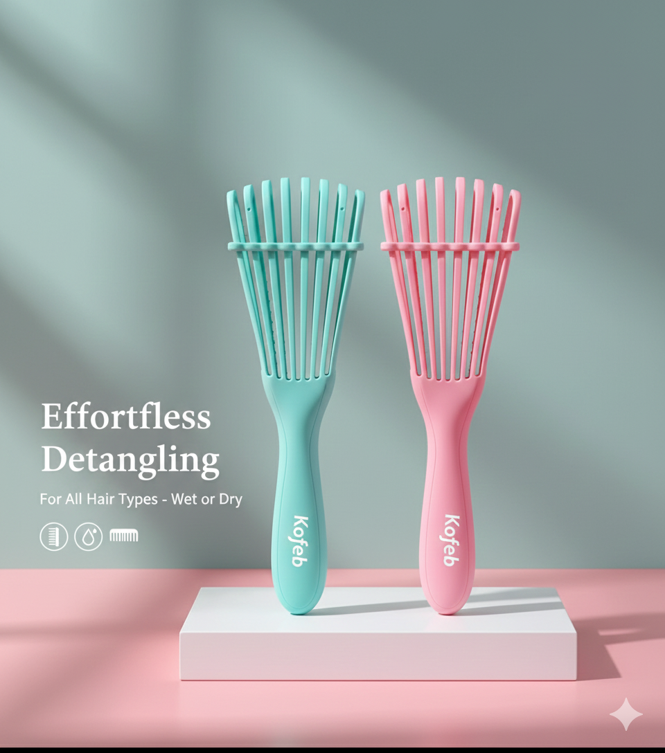 The KOFEB Curly Hair Soft Brush is your perfect daily styling partner. Designed for sensitive hair, it detangles smoothly, protects your natural curls, and keeps your hair soft, shiny, and frizz-free. A must-have for every curly-hair lover!