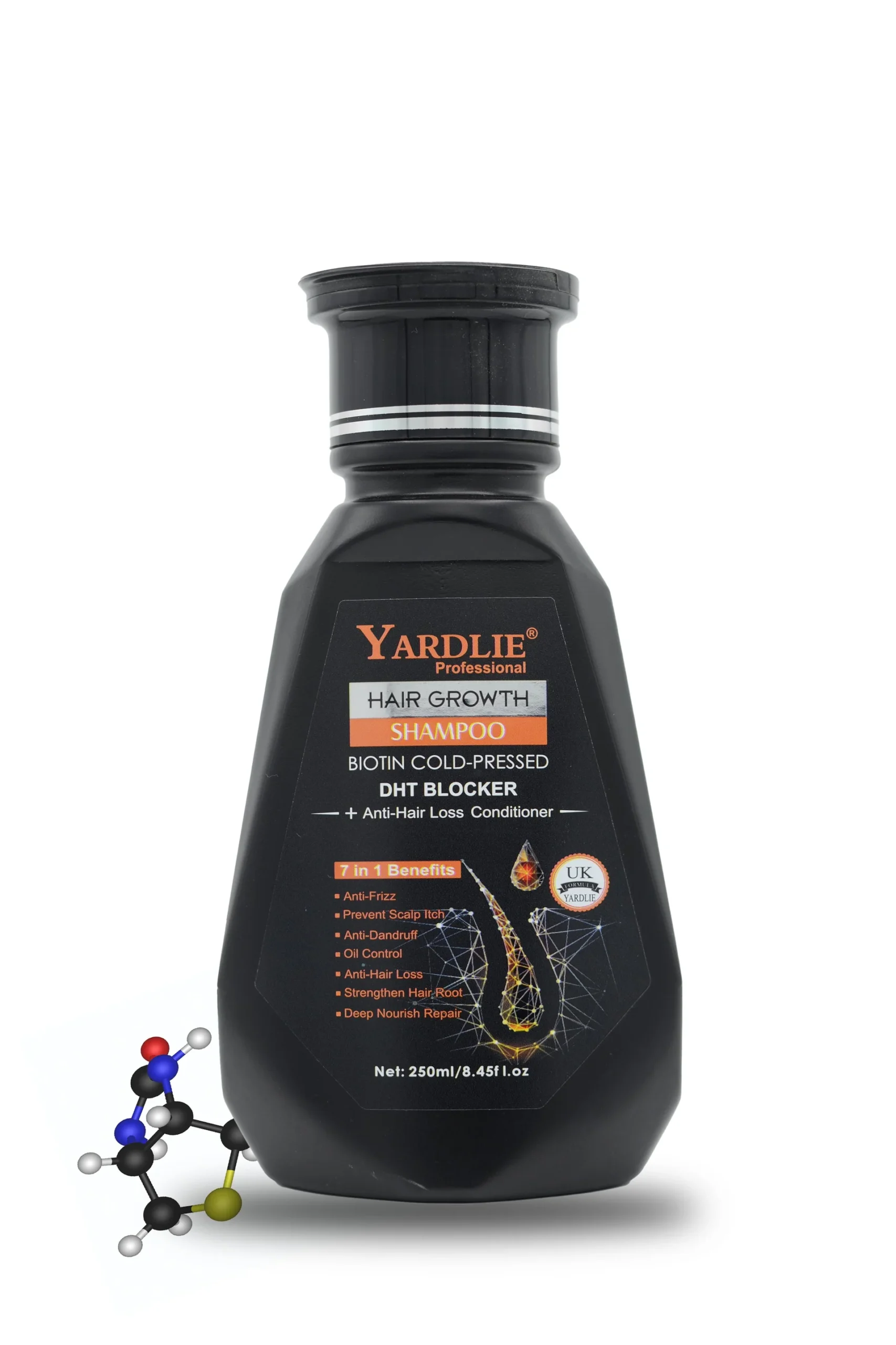 Yardlie Professional Hair Growth Shampoo 250ml with Biotin and Cold Pressed Oils helps reduce hair fall and strengthen weak hair. Paired with Anti-Hair Loss Conditioner, it nourishes the scalp, promotes thicker-looking hair, and improves overall hair health. Suitable for men and women.